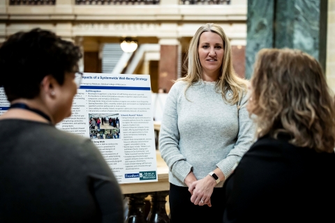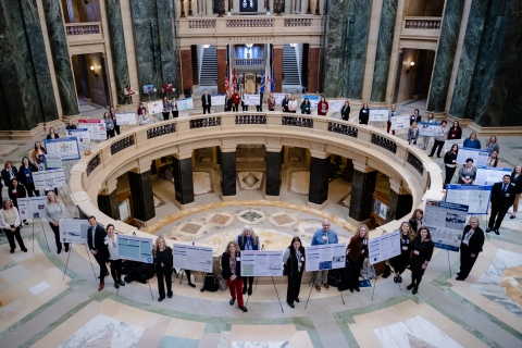 During the afternoon, staff from over two dozen Wisconsin hospitals presented quality improvement initiatives in the Capitol Rotunda. The WHA Health Care Quality Showcase offered legislators, hospital staff, leadership and the public the opportunity to engage with the dedicated staff that are leading initiatives across the state that advance patient care at Wisconsin hospitals.