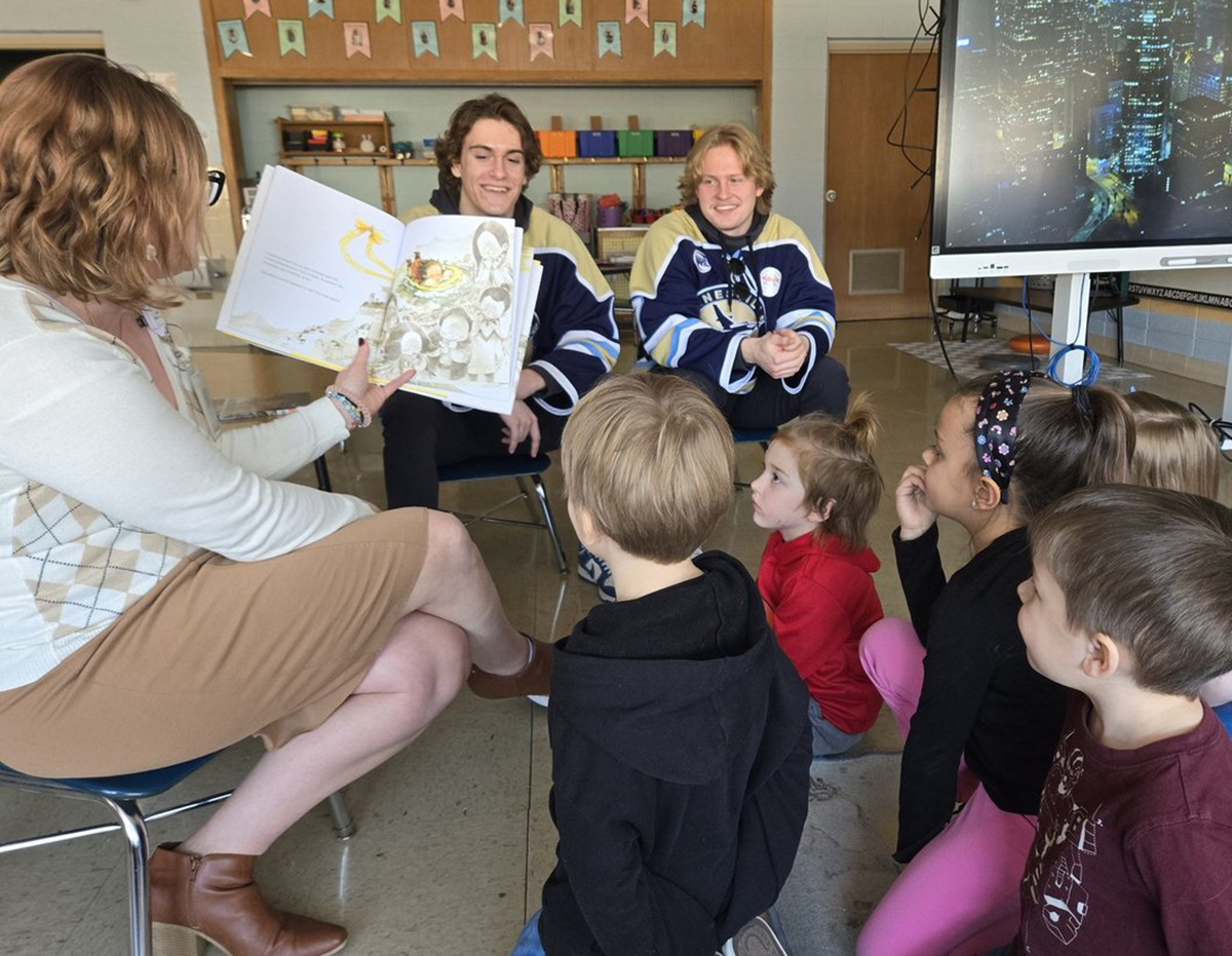 As part of the Janesville Jets Reading Club, kindergarten through eighth grade students track their reading progress during the first half of the school year. Then, just after New Year, the Jets hockey players and SSM Health representatives visit participating classrooms to read age-appropriate books and offer club rewards to encourage students to continue to read throughout the year.