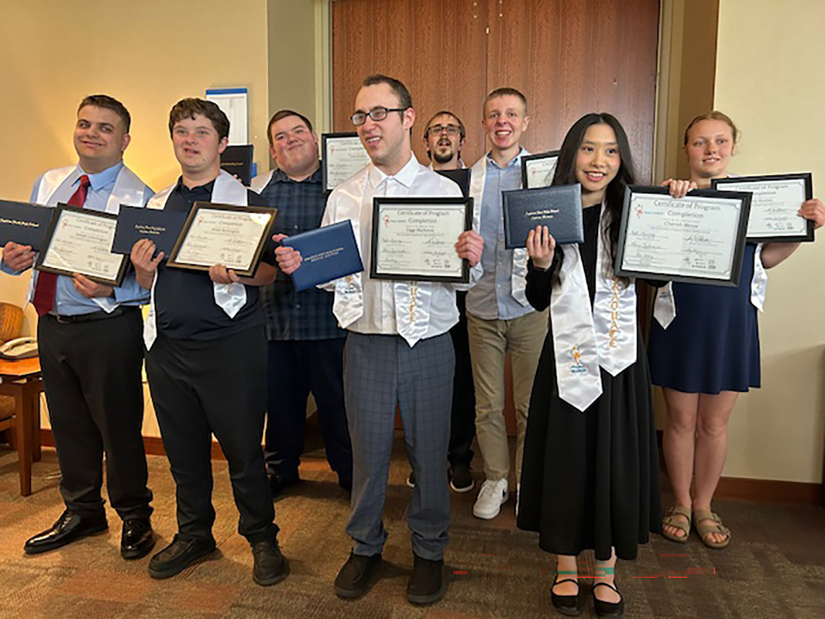 Project SEARCH 2025 graduating interns proudly display their program certificates and high school diplomas