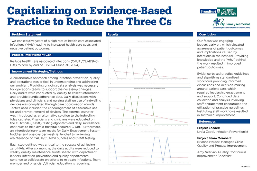 Two consecutive years of a high rate of health care-associated infections (HAIs) leading to increased health care costs and negative patient outcomes prompted intervention by Froedtert Holy Family Memorial Hospital.