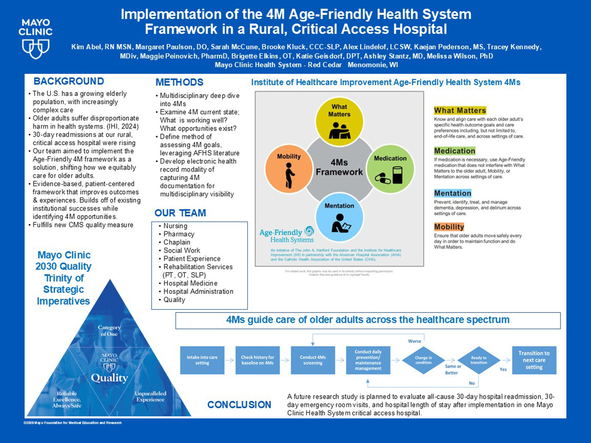 Mayo Clinic Health System – Red Cedar in Menomonie has received level 1 recognition from the Institute for Healthcare Improvement (IHI) and as of April 2026 officially started the research process of evaluating how well they are assessing and acting on the 4Ms.